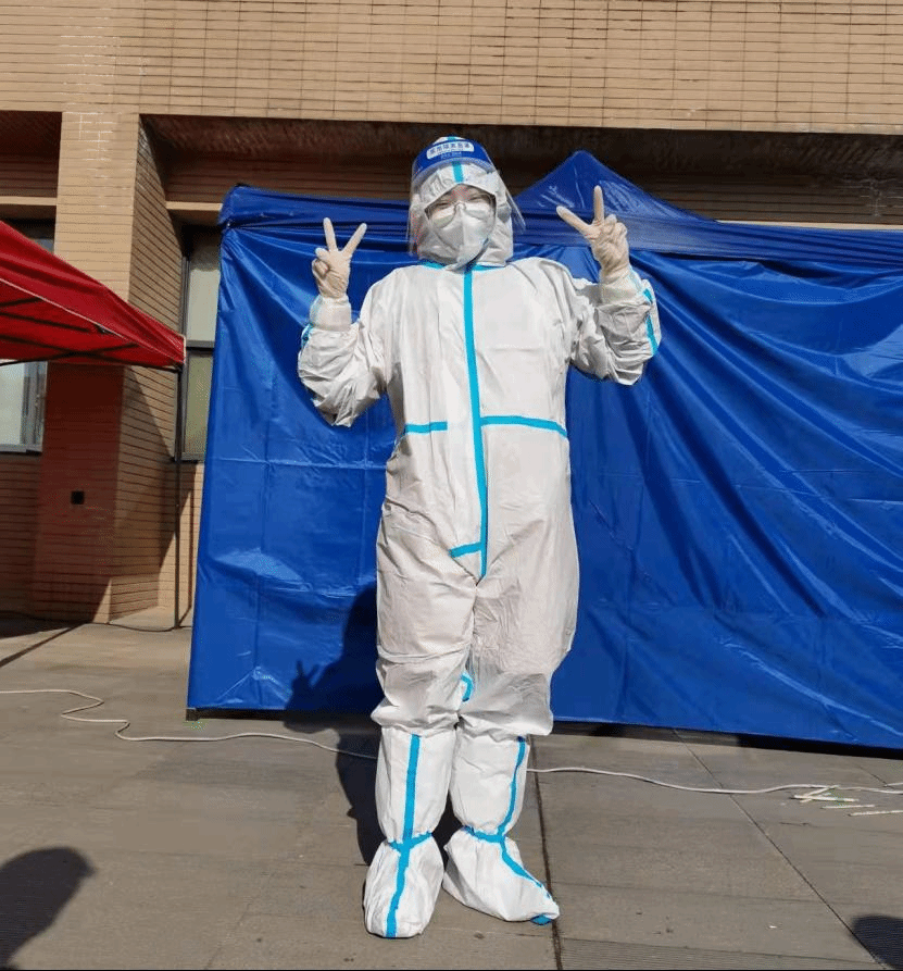 肖炘宜同志第一时间报名加入了南校区核酸检测的志愿服务,负责辅助医生扫描试剂管和递检测棉签以及核对被检测人员信息。她说:“当我从头到脚‘武装’完毕,有一刹那,我觉得我就是个战士”。看着站在旁边的医护人员一直不停消毒、拆棉签、做检查,没有一句抱怨,坚持到为最后一个同学做完核酸。她想,“我的工作是有意义的,我这样的志愿者多一个,就多一个医护人员腾出双手为大家做核酸。个人力量微小,但千千万万个志愿者的力量却可燎原”。