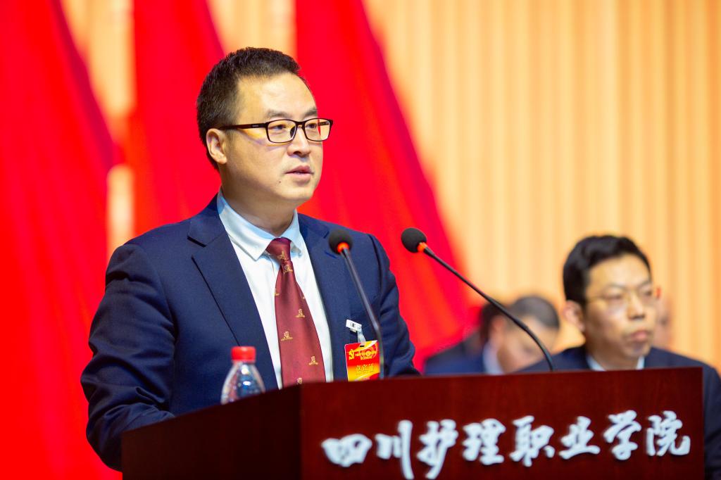 张涛同志代表省卫生健康委党组、代表直属机关党委向大会的胜利召开和大会选举产生的新一届党委委员、纪委委员表示热烈祝贺,并对学院第一次党员代表大会以来取得的可喜成绩表示肯定,对学院在疫情防控中体现出的责任担当表示赞赏。张涛强调,当前正处于“十三五”收官,“十四五”开局关键节点,如何总结经验,谋划未来,实现学院跨越发展,更好服务健康四川和健康中国建设,是新一届党委职责所在,使命所系。他代表省卫生健康委党组向新一届党委提出三点希望,一是要旗帜鲜明讲政治,牢牢把握办学治校正确方向;二是要奋发有为走在前,全力推进学校高质量发展;三是要驰而不息强作风,大力营造风清气正育人环境。