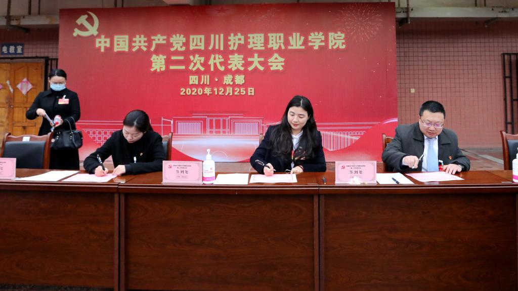 张健同志作题为《坚定不移纵深推进全面从严治党 为加快建设高水平卫生健康类职业大学提供坚强纪律保障》的工作报告。对第一次党代会以来学院纪委围绕中心强化担当,聚焦主业挺纪在前,切实履行全面从严治党监督责任进行了总结。对今后五年的纪委工作提出建议。一是要坚持严明政治纪律规矩,全面落实管党治党政治责任;二是落实各级主体责任,推动全面从严治党落到实处;三是弘扬川护家校情怀,打好作风建设攻坚战持久战;四是深化反腐倡廉教育,营造风清气正校园政治生态;五是保持惩治高压态势,深化监督执纪“四种形态”;六是围绕中心服务大局,把正风肃纪与促发展相结合;七是锻造过硬纪检队伍,忠实践行忠诚干净担当要求。学院纪委将在上级纪委和学院党委领导下,纵深推进全面从严治党,聚焦监督执纪问责,为实现第二次党代会提出的奋斗目标,提供坚强政治和纪律保证。