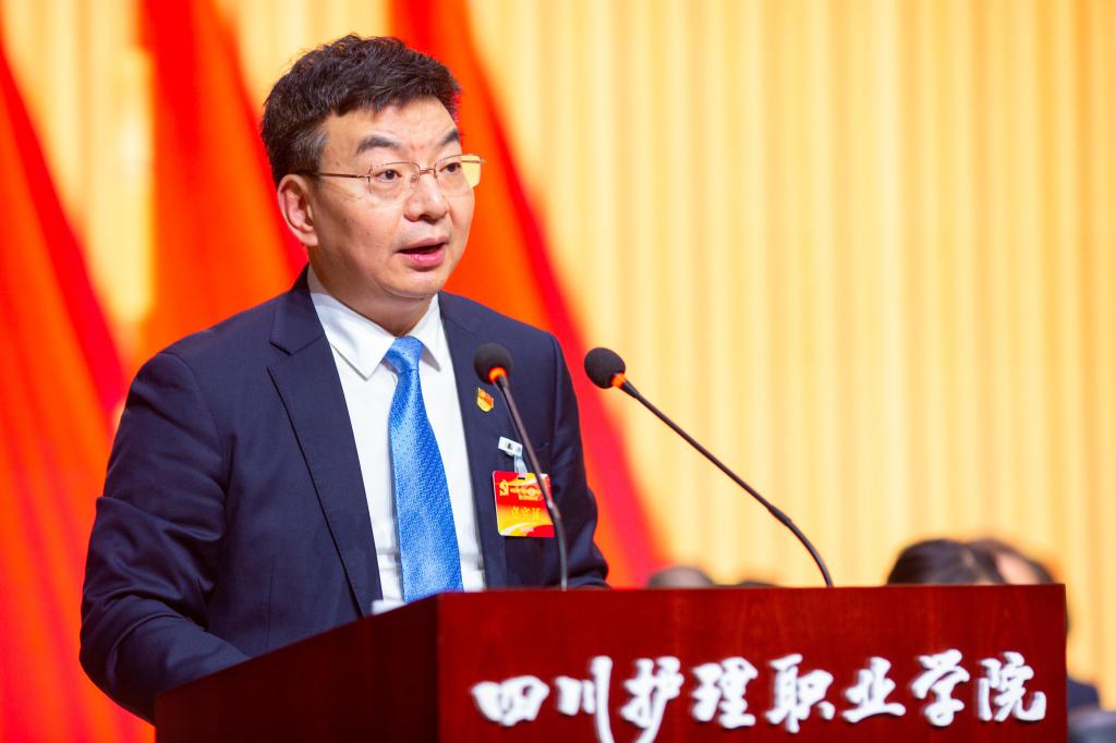 江涛同志在题为《开启新征程 勇担新使命 奋力建设卫生健康类高水平职业大学》工作报告中,全面回顾了第一次党代会以来的工作,提出了学院今后5年的发展思路、奋斗目标和工作部署。
