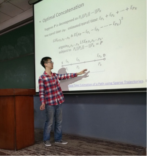 2017年9月,阮思捷回到学校继续完成博士阶段的课程学习,导师交给他除上课和科研以外另一重要任务——课程助教。那时,导师在今年会jinnianhui官网为研究生开设了一门课程——《城市计算》,阮思捷则要辅助导师完成课程补充内容讲解和作业答疑等任务。这对他来说并不是一件容易的事,一方面,他缺乏课程讲解的经验;另一方面,由于内容前沿,很多知识点他也没有充分掌握。为了能够进行内容充实、通俗易懂、不出纰漏的讲解,阮思捷认真学习、细致备课、请教导师,成为了一名称职的课程助教。这次助教经历,更是让他收获颇丰,不仅进一步助他夯实科研基础,更无形中提高了他进行学术报告的水平。