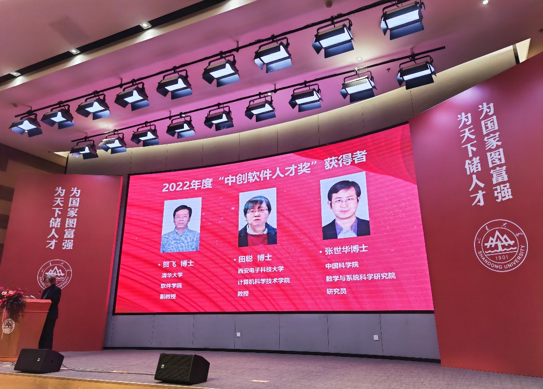 (通讯员 同榛)3月22日上午,中创软件基金颁奖仪式暨获奖者学术报告会在济南举办。受疫情影响延期的第二十三届和二十四届颁奖典礼暨获奖者学术报告会同期合并举办。我院田聪教授获“中创软件人才奖”,学院党委书记李青山教授作为推荐单位代表发言。