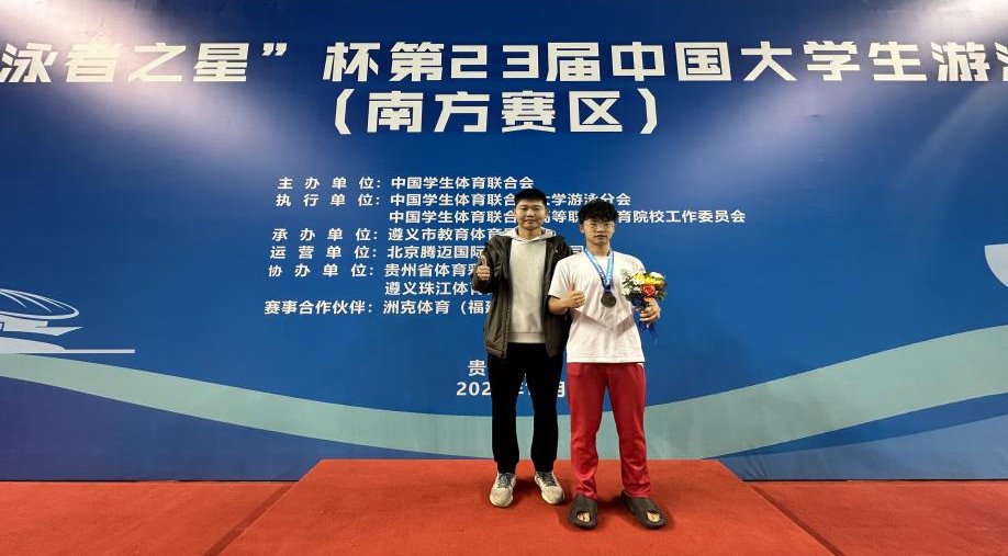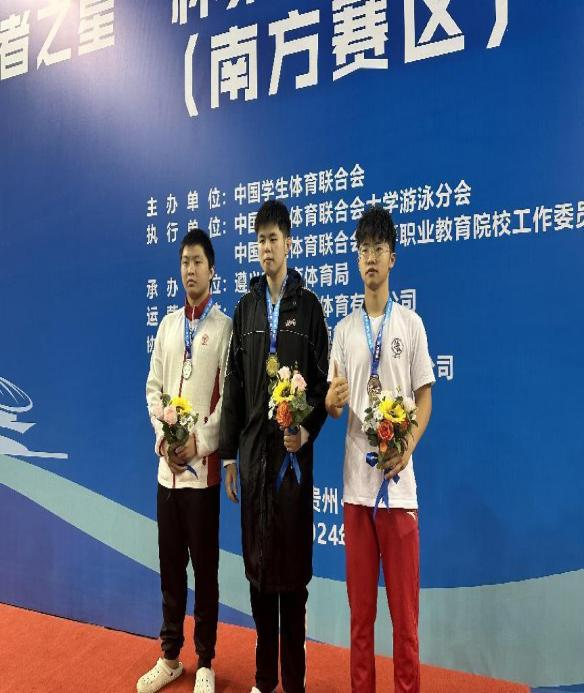 10月11日至10月17日,由中国学生体育联合会主办的2024年第23届中国大学生游泳锦标赛(南方赛区)在贵州遵义成功举办。学院由基础部教师徐人杰带队2020级高职康复1班学生田显峰代表学院参加比赛,以优异成绩勇获200米混合泳季军。