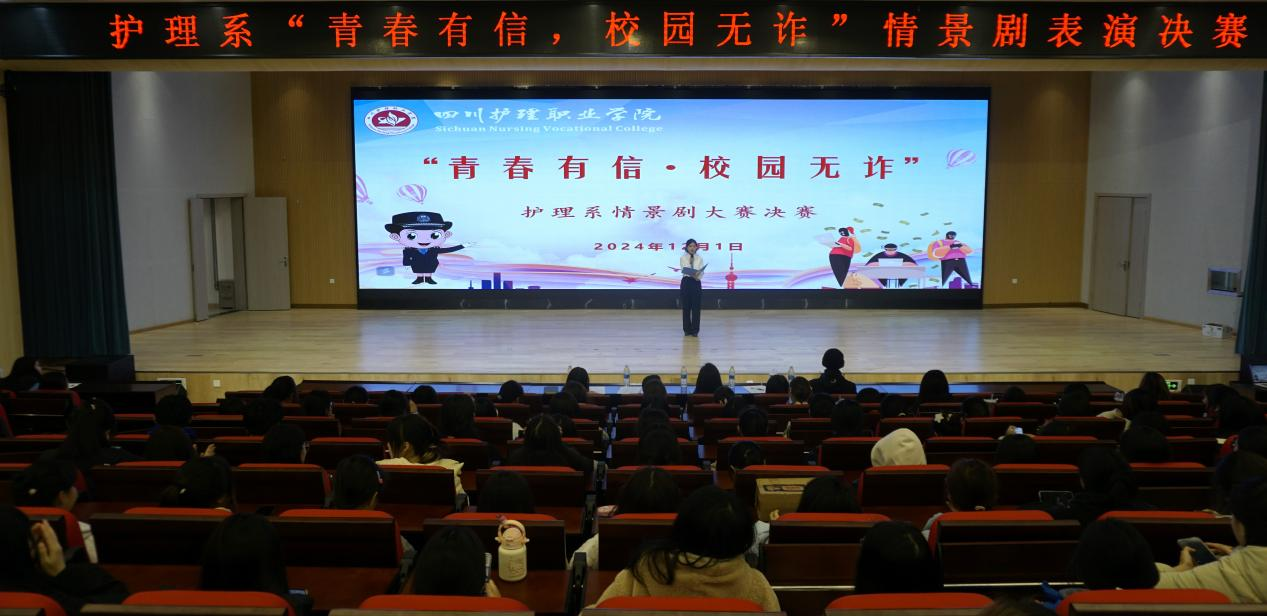 为进一步强化防范电信网络诈骗宣传,充分发挥青年大学生在反诈宣传工作中的主观能动性,护理系于12月1日在德阳校区举办以“青春有信 校园无诈”为主题的防诈情景剧大赛决赛。比赛由保卫处相关工作人员、系部辅导员代表作为参赛评委,共计17支学生队伍174人参加比赛。