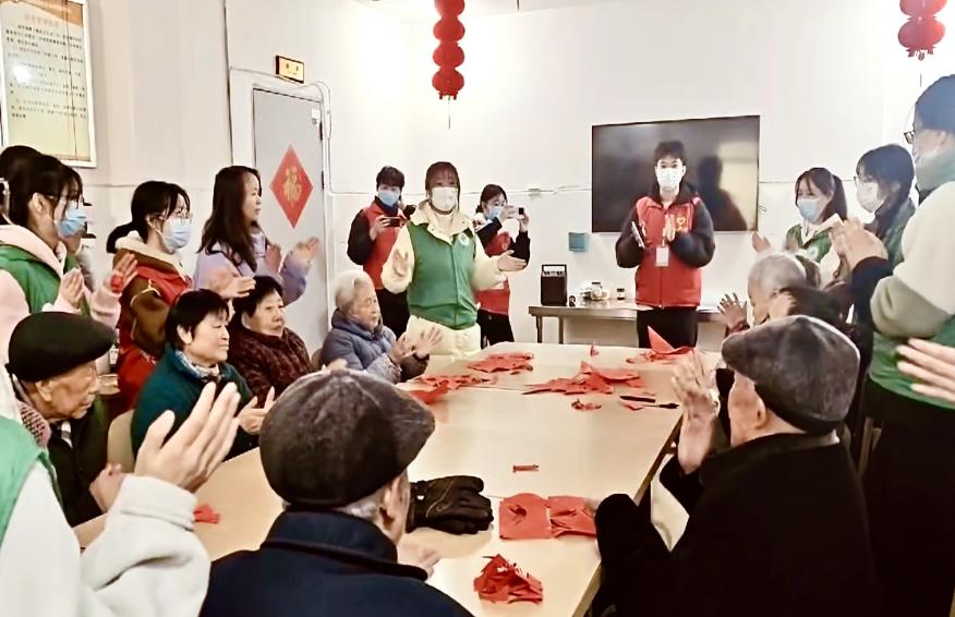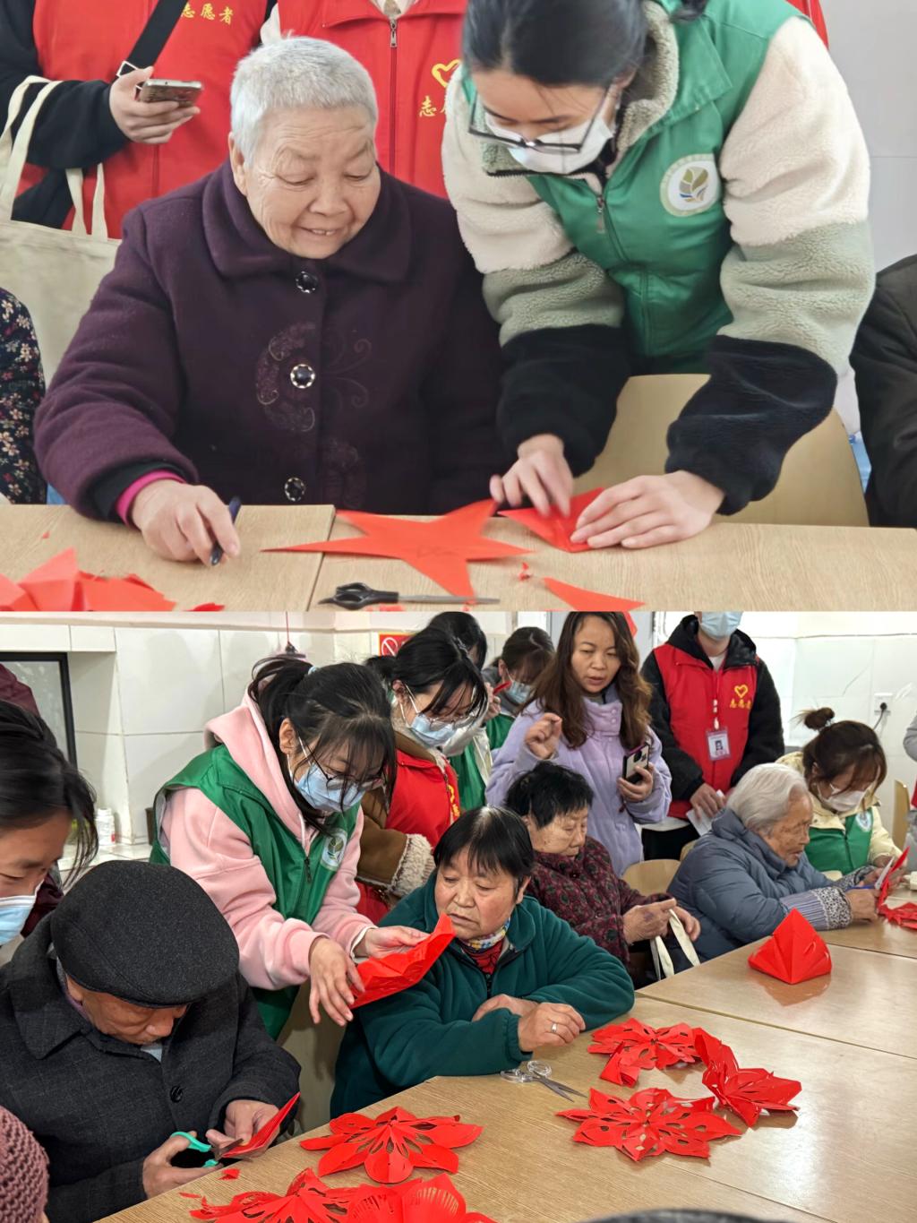 活动室内,志愿者们化身“小老师”,一边讲解剪纸技巧,一边用雷锋的故事鼓励老人尝试新事物。红纸翻折、剪刀轻旋,老人们学得全神贯注,在志愿者们的耐心指导下,一幅幅简单却饱含心意的剪纸作品诞生,老人们脸上洋溢着孩子般的笑容。