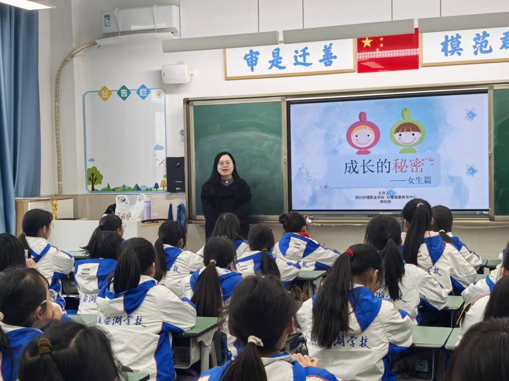 学院心理健康教育中心韩怡然老师以“成长的秘密”为题,为东安湖学校五、六年级的学生开展科普讲座。讲座内容涵盖青春期性生理、性心理、人际交往、亲子关系等内容,帮助青少年增强自我认知与情绪管理能力,培养健康的性别意识和积极乐观的生活态度,学会用科学的方法协调人际关系和缓解压力。参加讲座的学生表示,掌握了科学的生理卫生知识,树立了正确的性别观念,长期困惑自己的“小难题”也得到解决。