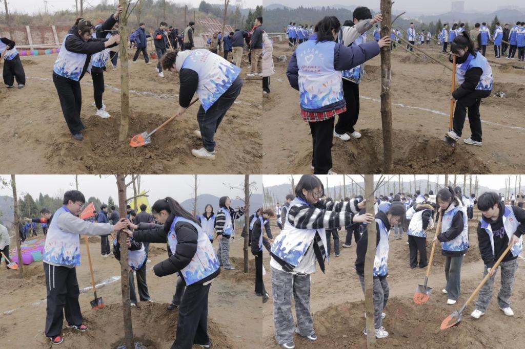 3月17日,德阳市2025年春季义务植树活动在旌阳区双东镇华强沟水库开展,学院护理系52名志愿者参加活动。