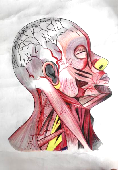 二等奖获奖作品《头颈部肌肉血管解剖手绘》(极致写实)、《心生》(心脏与植物共生)、《遗失的心跳》(抽象风格心电图),均以独特视角重新诠释解剖学知识。