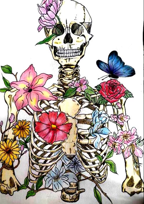 一等奖获奖作品《枯骨绽芳·蝶舞新生》将蝴蝶与骨骼的意象结合,隐喻生命的脆弱与坚韧,构图精巧,寓意深刻。