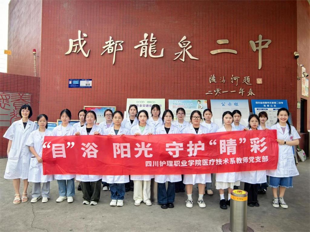 在第30个全国“爱眼日”即将来临之际,医疗技术系教师党支部组建师生宣教队前往龙泉驿区第二中学开展科学用眼健康宣教主题党日活动,推动青少年近视防控科学理念普及。