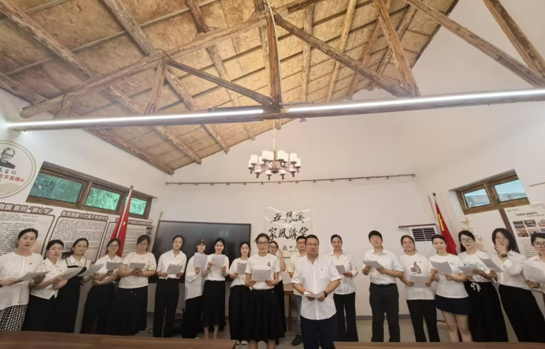 全体党员在党旗下重温入党誓词。现场朗诵了《为廉洁放歌》,铿锵有力的誓言、传播清廉的声音响彻会场,进一步坚定了党员们的理想信念,铸牢忠诚之魂。