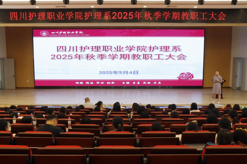 9月4日,护理系2025年秋季学期教职工大会在德阳校区演艺厅举行,全体教职工参加会议。会议由护理系主任邓小利主持。