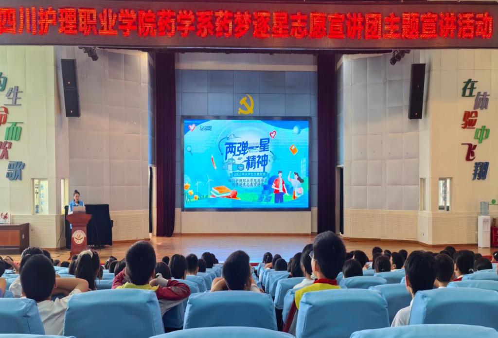 9月25日,学院药学系“药梦逐星”志愿宣讲团赴德阳外国语学校,举办了一场以“传承‘两弹一星’精神,科学认知辐射世界”为主题的科普宣讲活动。