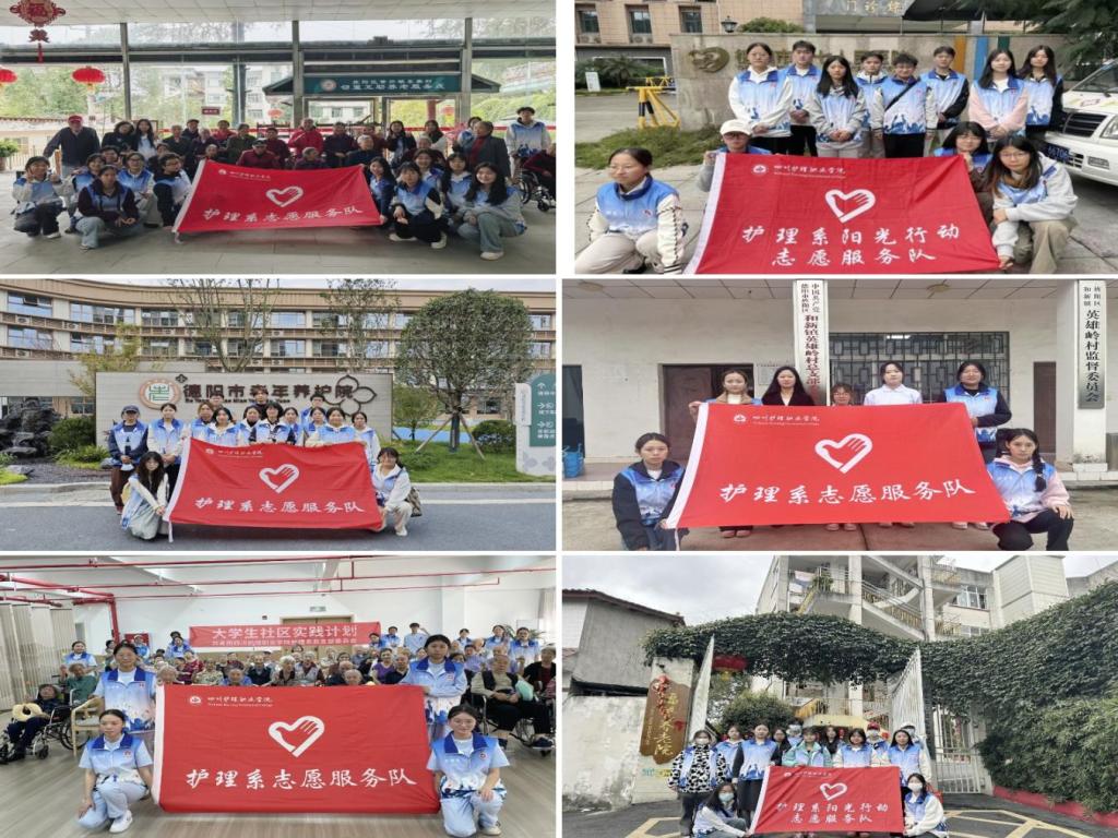 为弘扬中华民族“敬老、爱老、助老”的传统美德,强化医学生的大爱使命担当。10月重阳节期间,护理系志愿服务队携手德阳市老年养护院、第七人民医院、德善居护理中心、福馨养老院、美好明天老年公寓、文庙社区、和新镇英雄岭村等多个志愿服务点,开展16场以“九九重阳节·志愿暖桑榆”为主题的系列志愿服务活动,累计服务600余人次,以实际行动为老人们送上节日温暖。