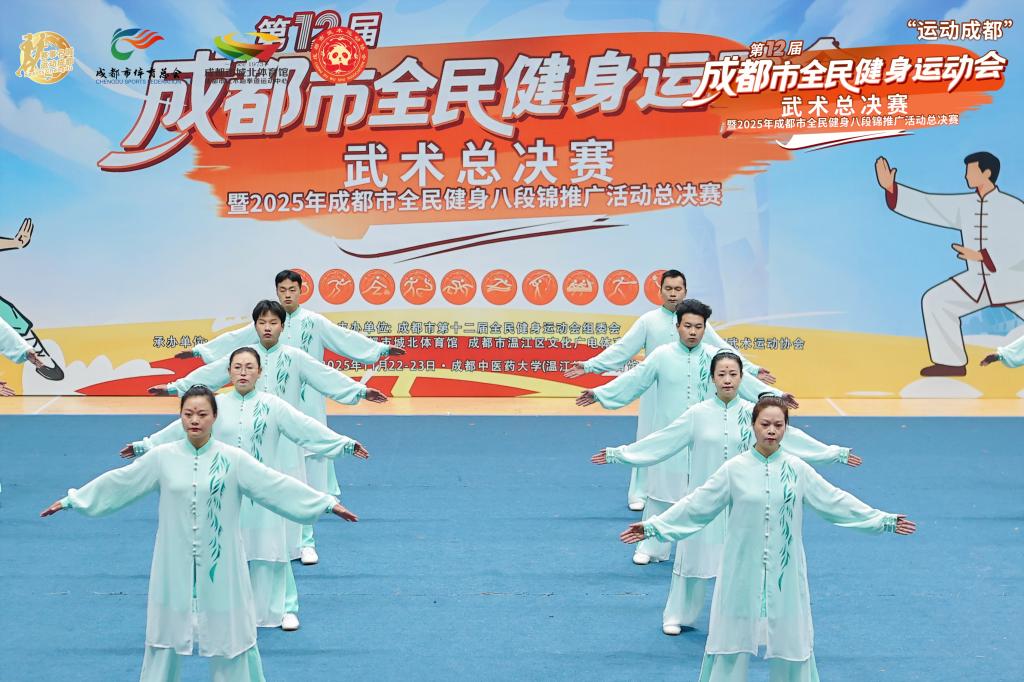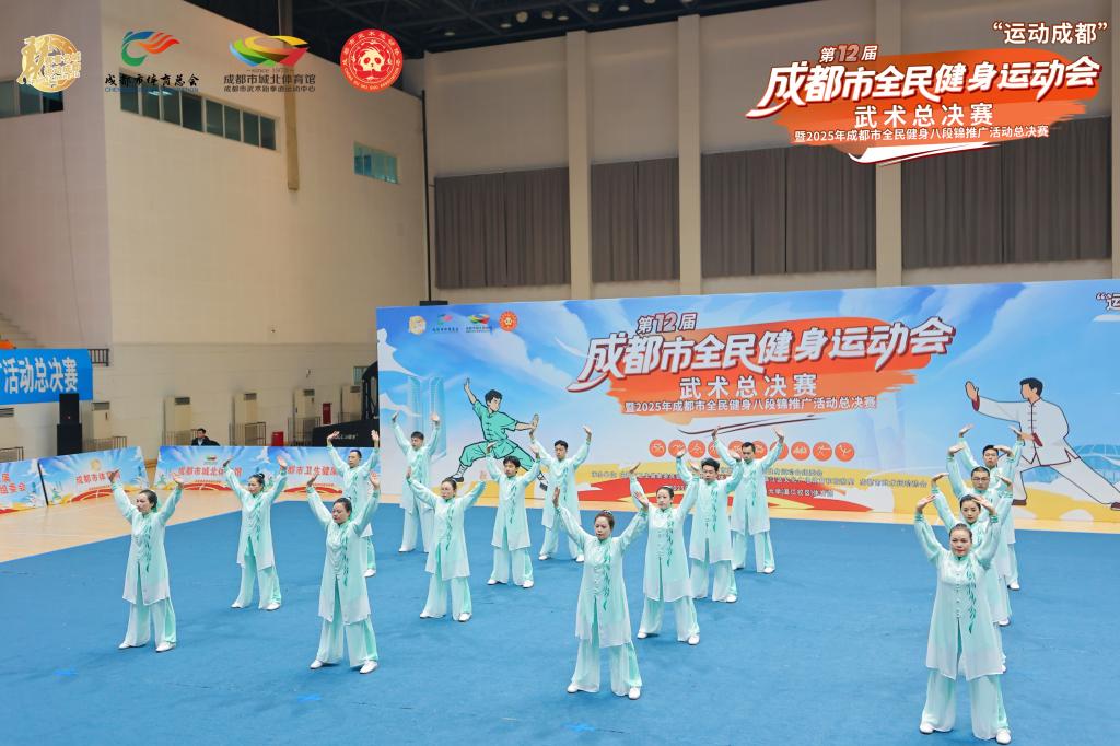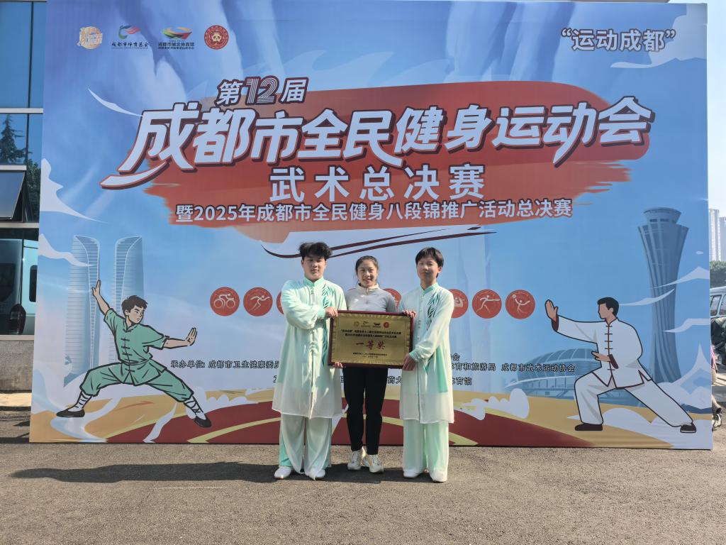 11月23日,在“运动成都”成都市第十二届全民健身运动会武术总决赛暨2025年成都市全民健身八段锦推广活动总决赛中,由学院教师担任总教练的龙泉驿区代表队,从23支队伍中脱颖而出,以9.15分第一名的优异成绩勇夺一等奖,为校区共建再添亮眼一笔。
