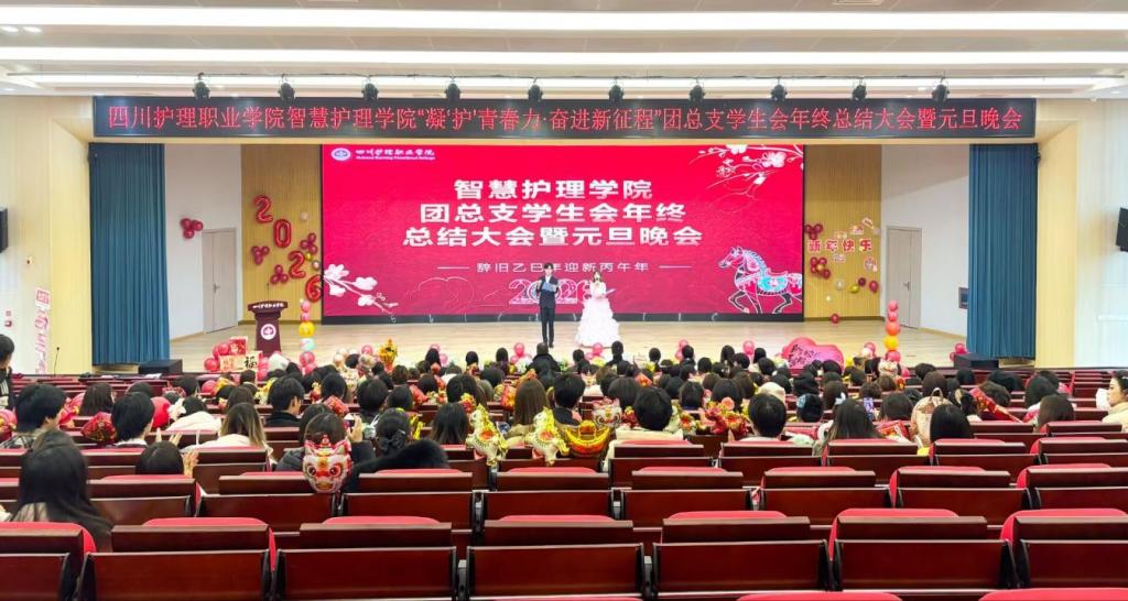 为推进以学生为中心的发展理念,进一步激发智慧护理学院团总支学生会组织活力,夯实队伍基础,提升工作效能,智慧护理学院于12月23日在德阳校区组织开展“凝‘护’青春力·奋进新征程”团总支学生会年终总结大会暨元旦晚会。智慧护理学院党总支书记黄鸷、副书记田炼、学工管理老师及学生会全体成员共计200余人参与本次活动。