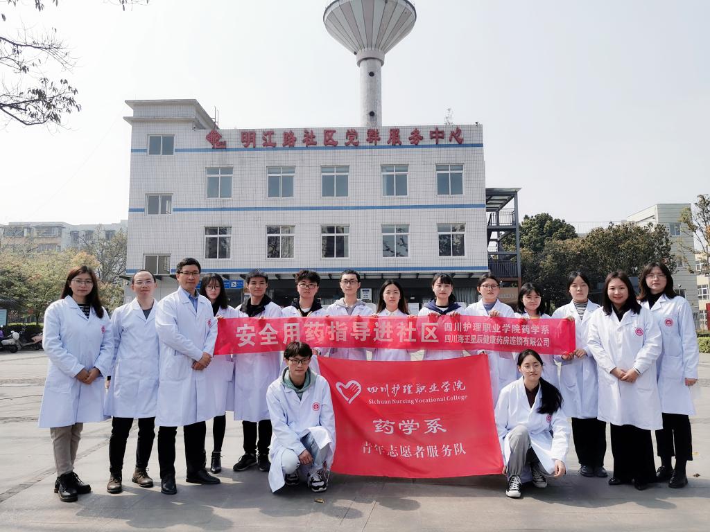 3月15日,药学系青年志愿者服务队联合四川海王星辰健康药房连锁有限公司于龙泉驿区明江路社区开展了安全用药指导进社区服务。志愿者们走访社区为居民宣讲过期药品的危害等相关知识、为社区居民提供测量血压、血糖、尿酸等免费健康检查,对老年人常见病、多发病的预防诊治、健康保健等知识进行宣传,并针对性地给予了饮食生活以及合理用药的建议。
