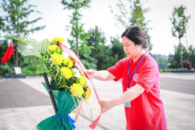 7月22日,实践团队继续赴雅安市名山县蒙顶山参观红军百丈关战役纪念馆,在“红军百丈关战役烈士纪念碑”前向烈士默哀、敬献花篮,表达对革命先烈无限的敬仰和无尽的怀念。