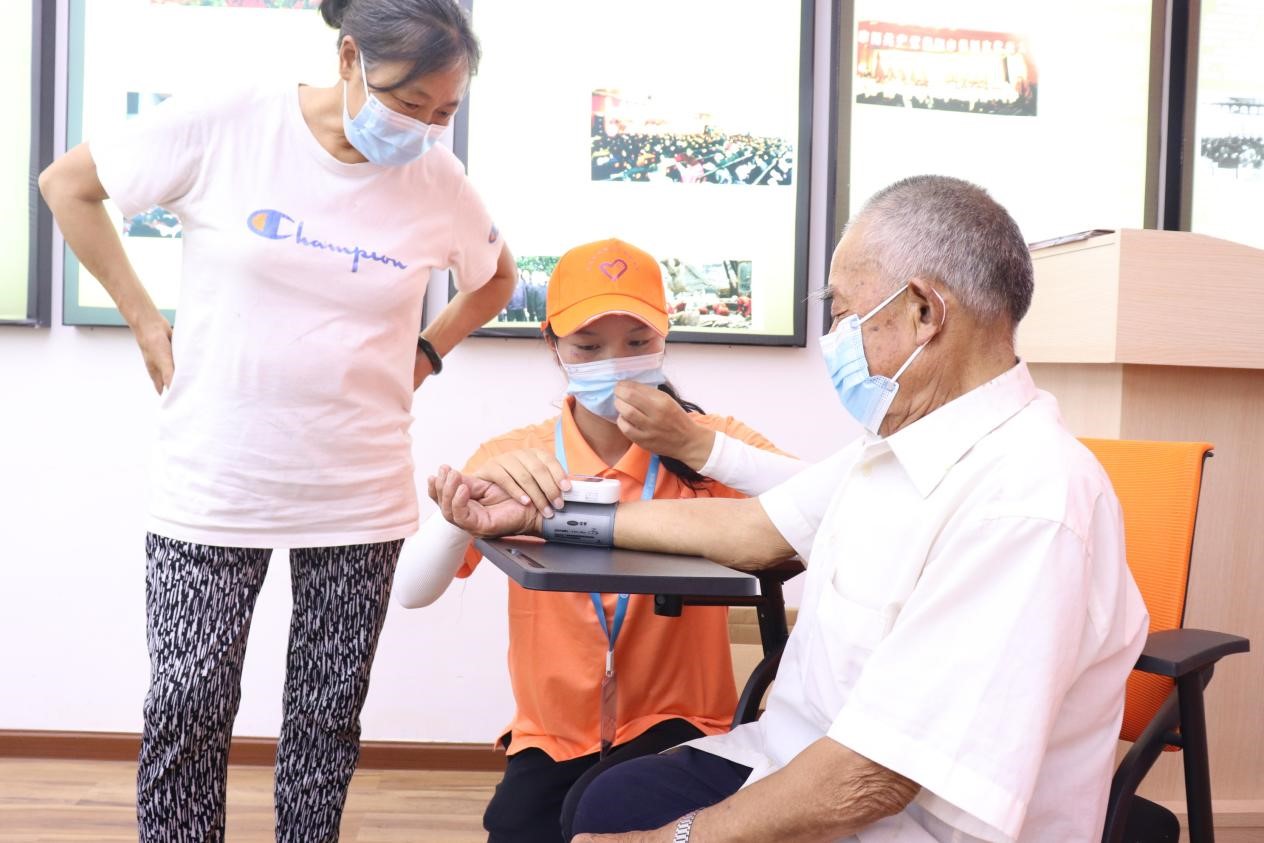 (志愿者为老人测量血压)