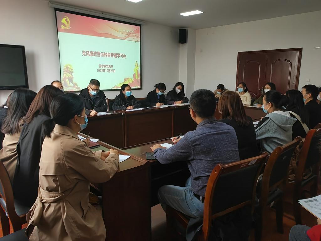 10月26日,药学系党总支召开党风廉政警示教育专题学习会,重点围绕党风廉政警示教育案例等相关内容组织学习。药学系全体党员参加会议。会议由药学系党总支书记施晓莉主持。