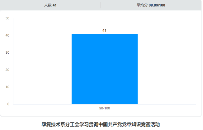 党章是党的总章程和根本大法,是全面从严治党的总依据,是全党必须遵循的总规矩。为了深入推动学习贯彻新修订党章,把学习贯彻党章作为学习贯彻党的二十大精神的重要内容,更好发挥党章对推进党的教育事业、加强党的建设的重要指导作用,康复技术系党总支、分工会于2022年12月9日至12月13日,组织开展学习贯彻《中国共产党章程》知识竞答活动,共计41名教职工参加。