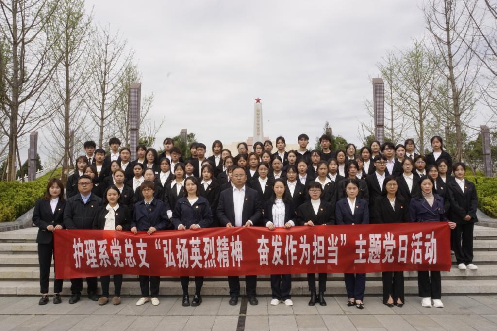 为弘扬英烈精神、传承红色基因、赓续红色血脉,4月3日,护理系党总支党员代表、团总支团员代表在党总支书记黄鸷的带领下,前往德阳市英烈纪念园开展“弘扬英烈精神 奋发作为担当”主题党日活动。