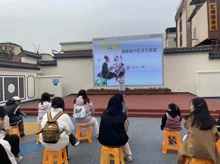 志愿者以“颈椎病中医养生保健”为题,从颈椎病的定义、产生原因及日常生活中如何有效防治等方面向社区居民科普颈椎病防治知识,并提醒大家如果出现颈椎问题要及时就医,早发现、早诊断、早治疗。活动期间,志愿者带领现场居民练习健身气功八段锦、太极拳,开展艾灸、拔罐、针刺等中医适宜技术。