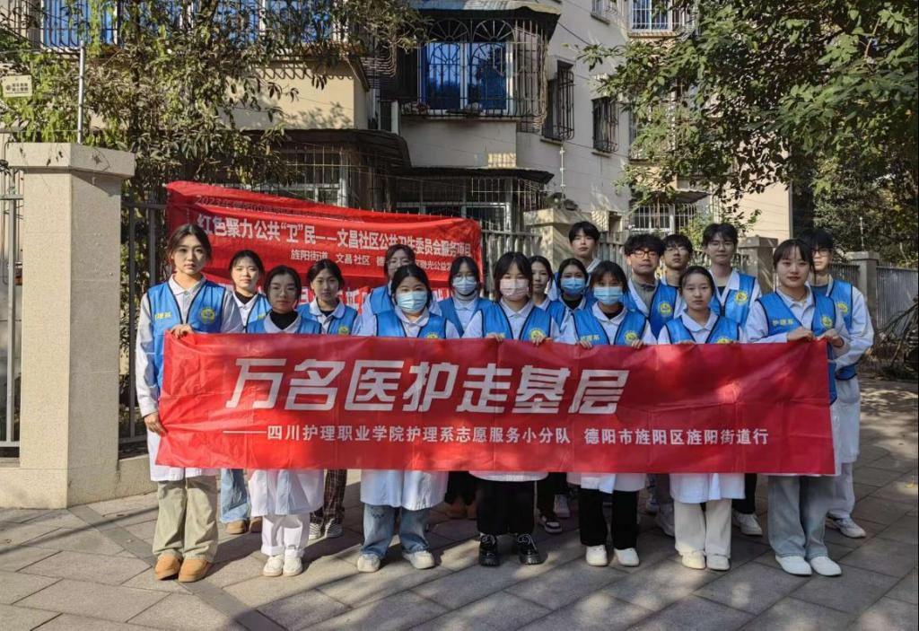 为增强基层群众健康获得感、幸福感、安全感。2023年12月以来,护理系深入德阳市旌阳区旌阳街道与孝感街道开展“万名医护走基层”志愿服务活动4次。