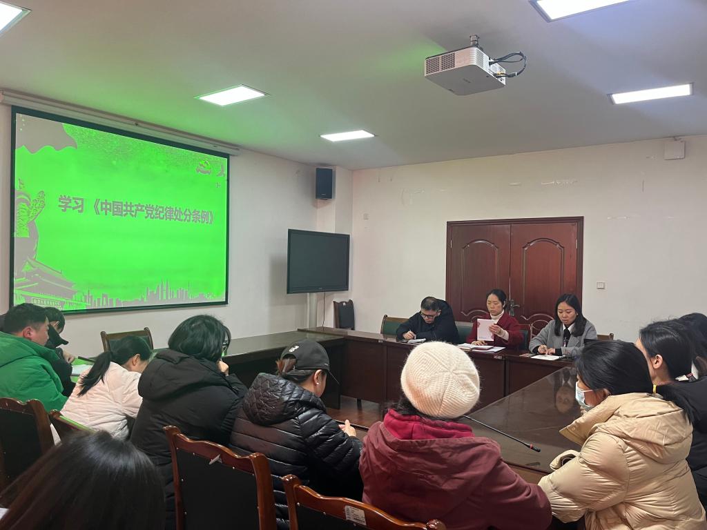 系党总支副书记、主任向俊蓓领学《中国共产党纪律处分条例》,通过学习,全体党员深刻认识到,纪律是时刻高悬的“戒尺”,是不可跨越的“火线”,是凝心聚力干事业的保障,必须立标准,严执行,全体党员要常怀敬畏,养成纪律自觉。
