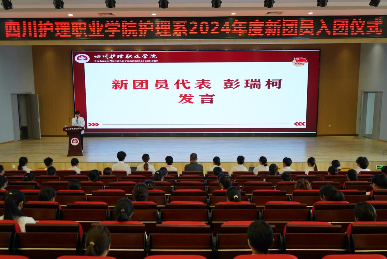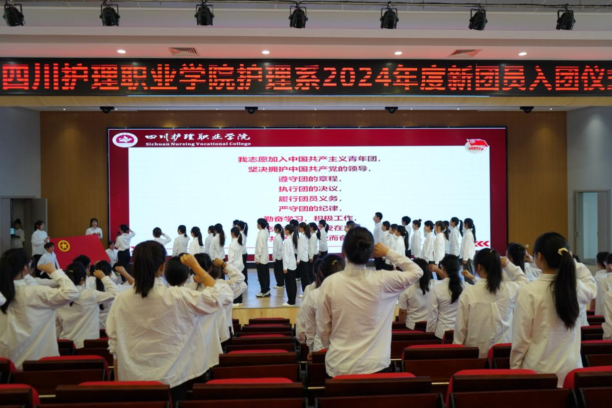 为学习贯彻习近平总书记关于加强新时代团员队伍先进性建设的重要指示,激励和动员川护青年继承和发扬五四精神,践行团的初心使命。4月28日,护理系在德阳校区举行了2024年度新团员入团仪式。护理系党总支书记黄鸷、副书记田炼出席仪式,党员代表黄佳、团总支书记康琴和新老团员代表100余人参加。