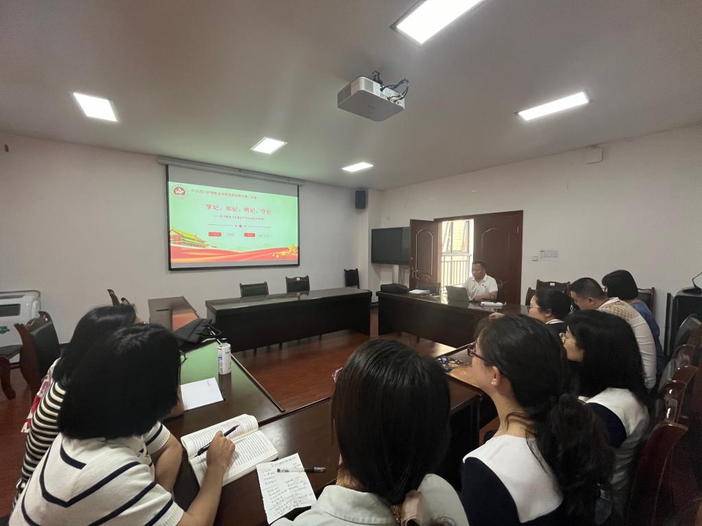 4月28日,思政部党总支第二教师党支部在学院成都校区开展《中国共产党纪律处分条例》主题学习。本次集中学习,旨在认真研讨《中国共产党纪律处分条例》,准确把握“六项纪律”的主旨要义和规定要求,筑牢思想根基,践行忠诚干净担当。