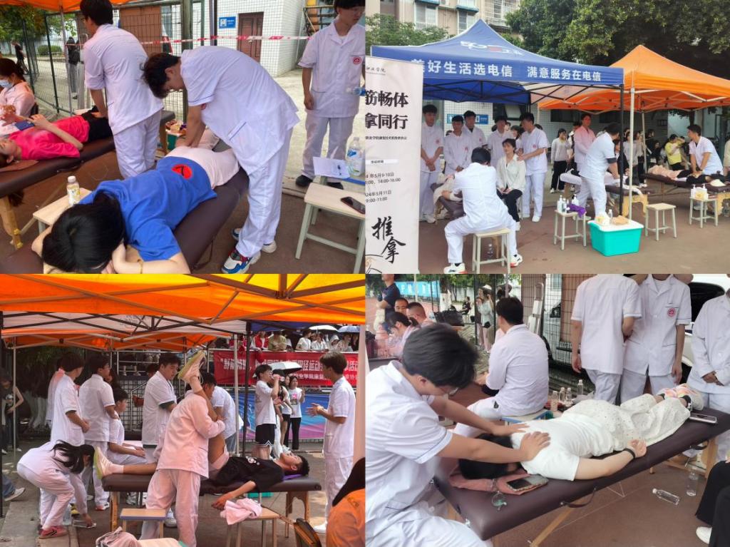 5月9日至11日,学院举办了春季田径运动会,运动会期间,康复技术系本着“学以致用,服务社会”的原则,组织开展“舒筋畅体,推拿同行”春季田径运动会义务推拿活动,为师生运动员提供免费推拿服务。