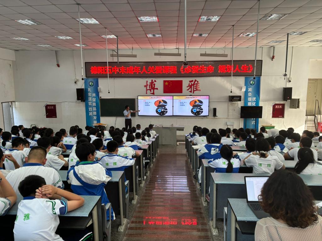 5月13日,学院基础部主任赵宏贤教授受邀为德阳市第五中学讲授未成年人关爱课程《珍爱生命·规划人生》。