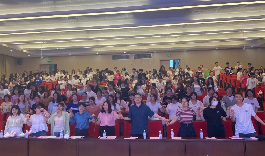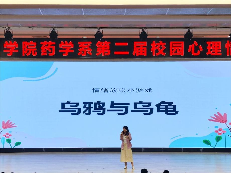 现场,全场观众进行了《乌鸦与乌龟》的心理团体辅导小游戏,让同学们感受到,过度紧张时,我们的思维会变得局限、狭窄,此时一定要给自己一个放松的机会,释放内心压力。