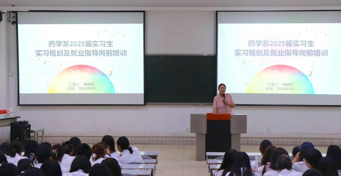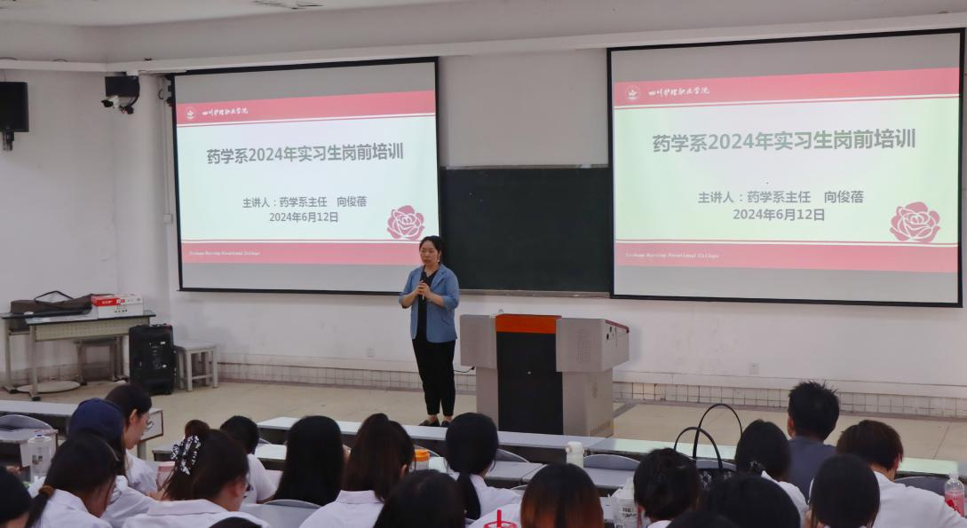 为加强系部实习工作规范管理,促进学生迅速转变角色、切实提升实习质量,6月5日至12日,药学系在成都校区开展实习生动员暨岗前培训,特别邀请四川省人民医院(东院)药学部老师朱玲,四川一心堂医药连锁有限公司人力资源部总监梁娟为学生进行培训指导。药学系主任向俊蓓、党总支书记施晓莉、全体辅导员及2025届619名实习学生参加了培训。