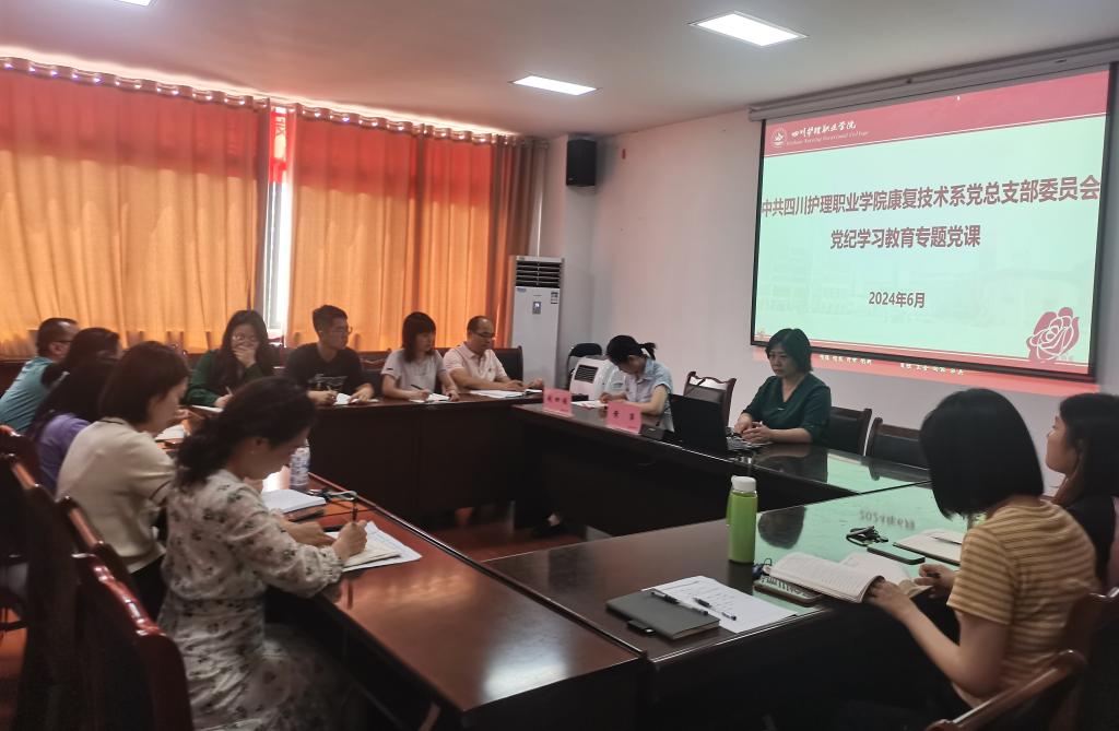 为深入推进党纪学习教育,教育引导党员教师学纪、知纪、明纪、守纪,6月25日下午,康复技术系党总支开展党纪学习教育主题党日活动。
