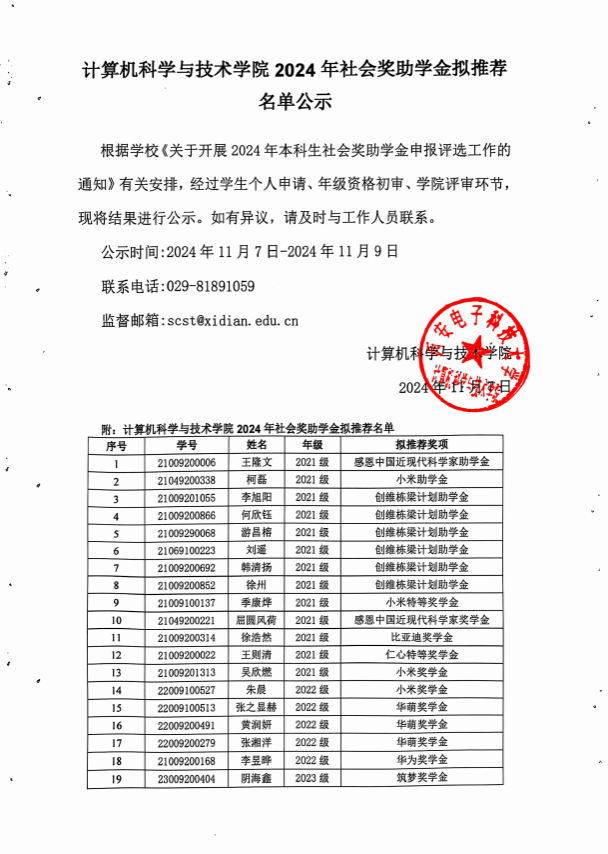 今年会jinnianhui官网2024年社会奖助学金拟推荐名单公示