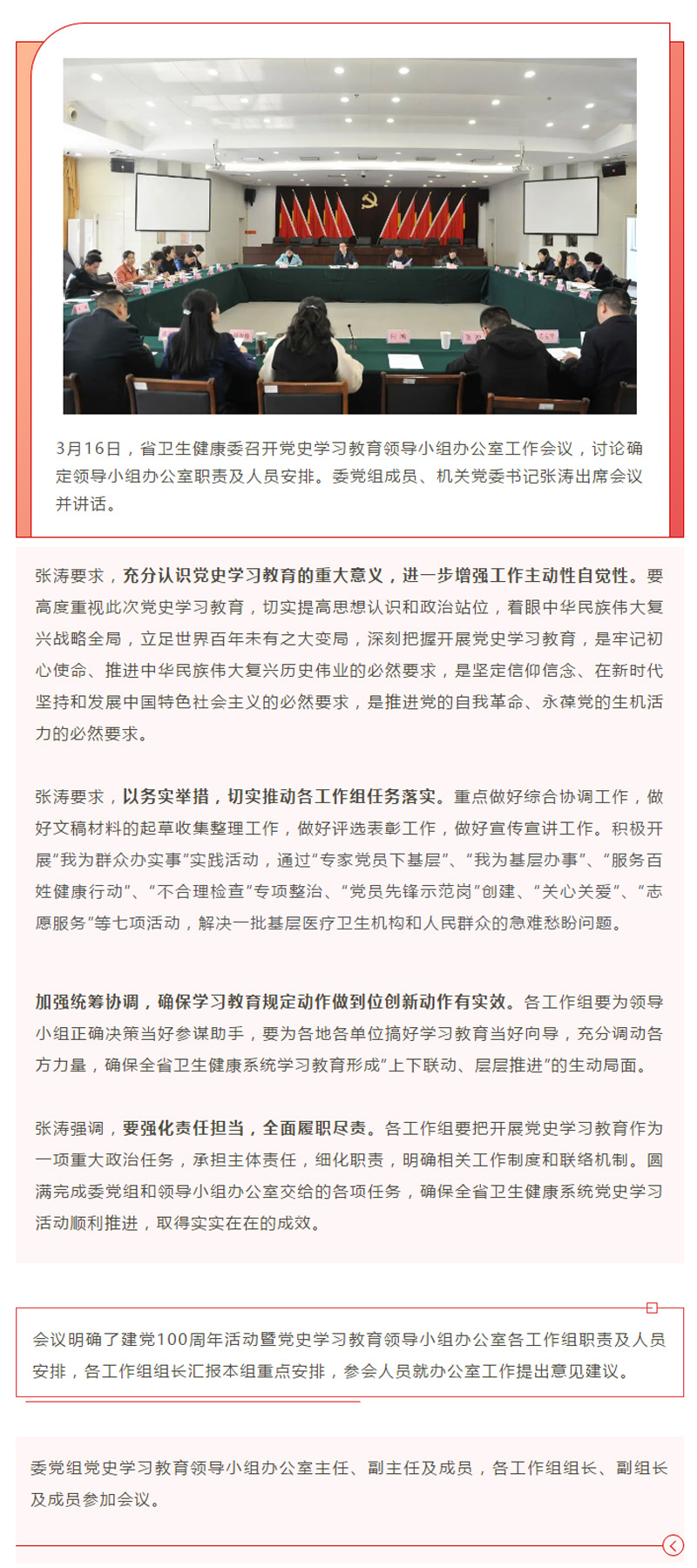 【安排部署】人员一股绳 工作一盘棋!省卫健委召开党史学习教育领导小组工作会议