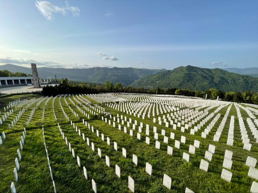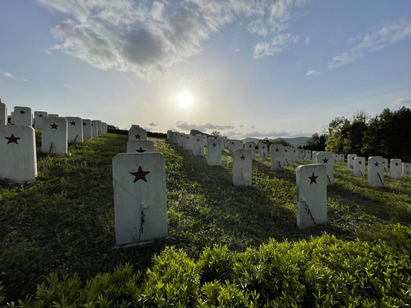 在占地150亩的集墓区,一座座白色墓碑,整齐排列,墓碑上没有姓名,只镶嵌着一颗颗鲜红的五角星,英雄无言,青山静默,带给大家的却是强烈的心灵震撼,置身其间,依稀可见当年红军将士“智勇坚定,排难创新,团结奋斗,不胜不休”的革命豪情。