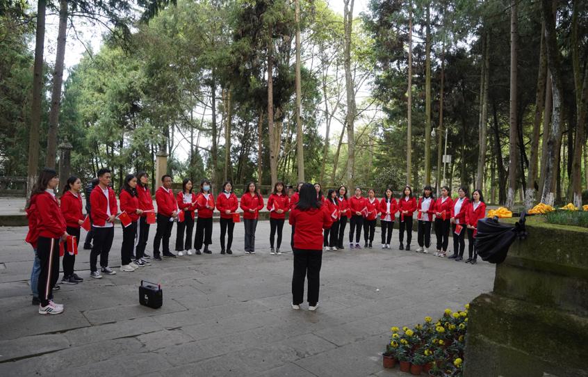 首先映入眼帘的是由红四方面军总医院政治部主任张琴秋亲自设计并题词的烈士纪念墓碑。在纪念墓碑前,思政部教师谢孝红进行了现场教学。大家深切的感受到革命的艰辛以及红军将士勇往直前、不畏牺牲的革命精神,也更加明白了如今幸福生活的来之不易。