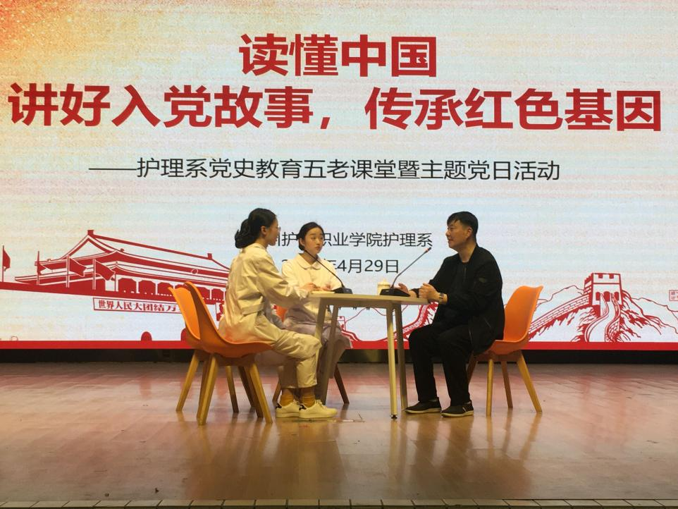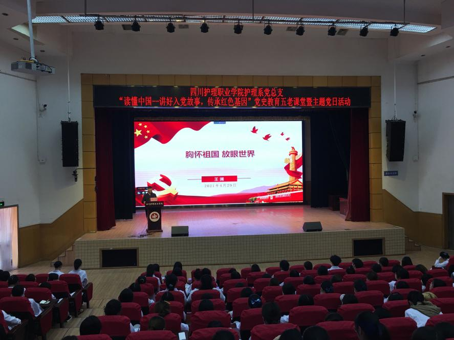 为庆祝中国共产党成立100周年,加强党史学习教育,2021年4月29日,护理系党总支在成都校区举行“读懂中国--讲好入党故事,传承红色基因”“五老”讲党史主题党日活动。本次活动特邀学院退休教师王澜同志做专题讲座。