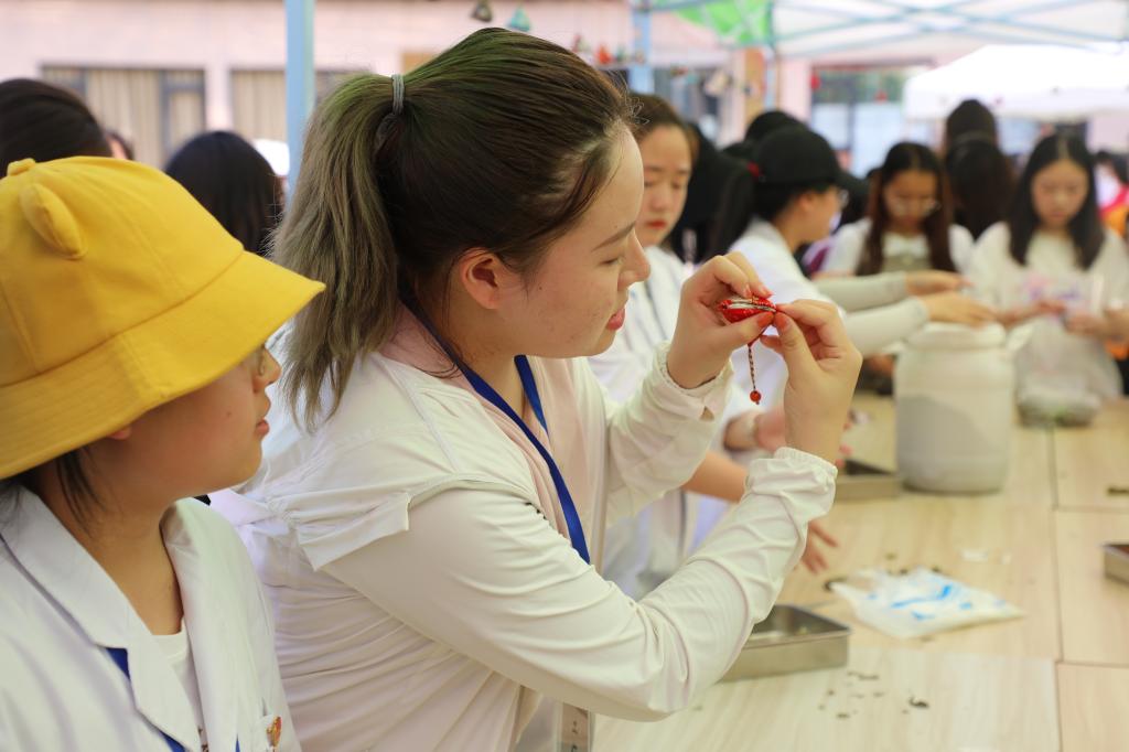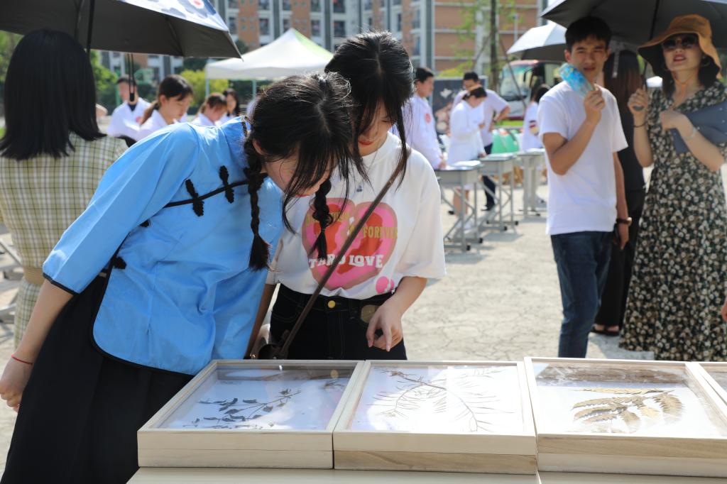 下午四点,活动正式拉开帷幕。本次体验活动涵盖中药香囊制作、滴胶制作、中药研磨、大山楂丸制作、中药饮片展示及药用植物标本展示六大主题板块。师生在动手体验中感受中华传统医药文化的乐趣,感受到中医药学习的魅力。在拓宽专业视野的同时,提升学生对中医药文化的认同感进而增强其专业自信及文化自信。