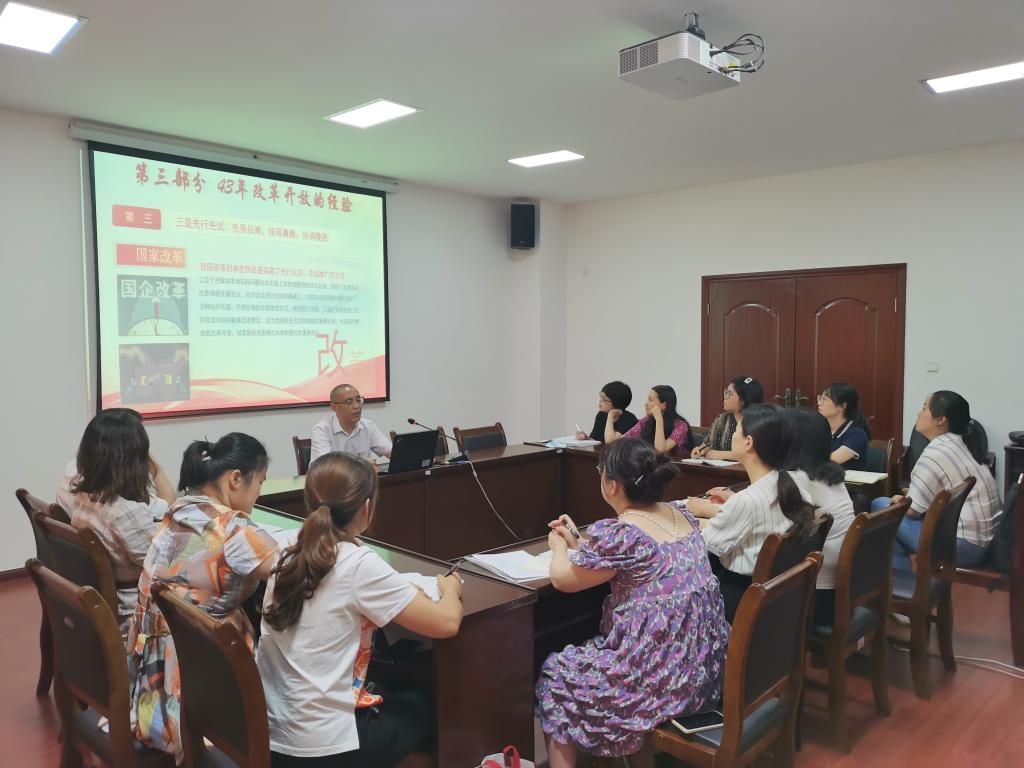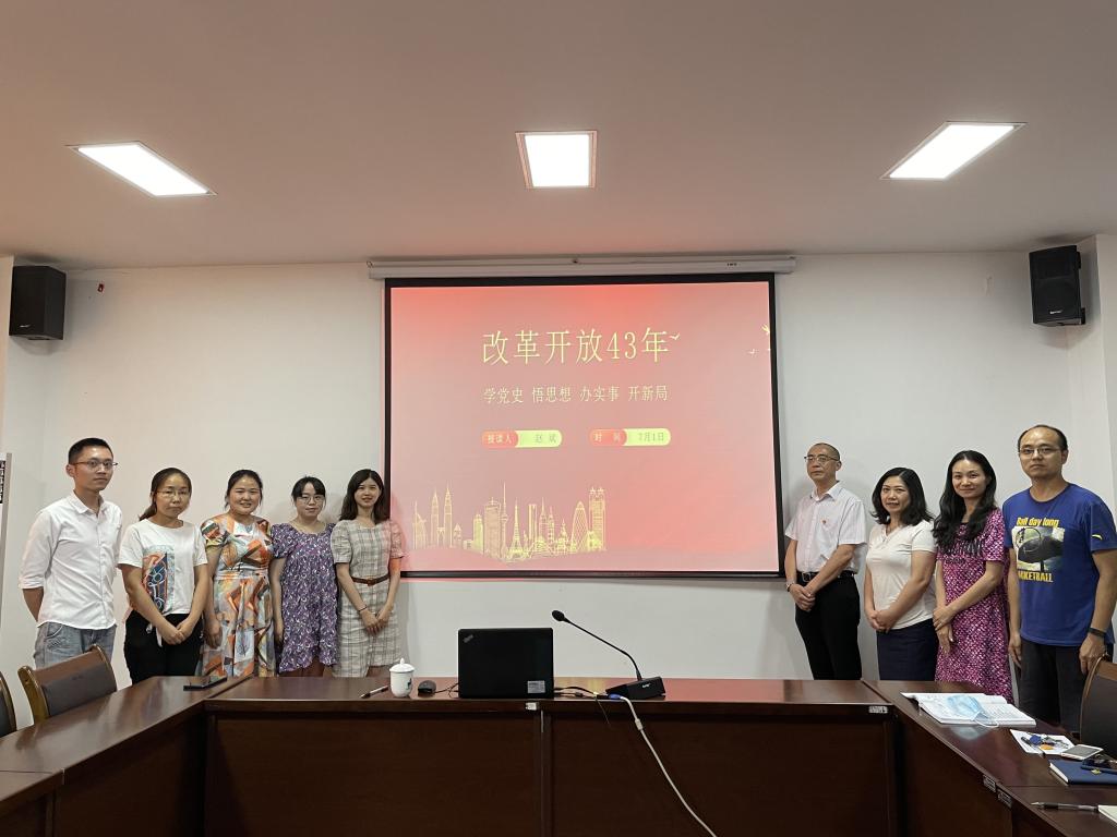 赵斌副院长指出,今天观看了庆祝中国共产党成立100周年盛典,习近平总书记重要讲话让我们感到作为中国人的自豪和自信。在建党100年的历史中,改革开放已有43年,广大党员同志要正确认识改革开放的重要历史地位。赵院长从改革开放五个阶段的发展介绍了我国改革开放的基本历程,深入解读了改革开放以来,我国在经济建设、社会主义民主政治、社会主义先进文化、保障和改善民生、国际影响力的提升等方面取得的辉煌成就,帮助大家深刻理解改革开放取得的经验以及启示。赵院长指出,改革开放的历史实践充分彰显了中国共产党的初心和使命,生动诠释了“江山就是人民,人民就是江山”的为民情怀。最后,赵院长希望全体党员同志要认真学习习近平总书记在庆祝中国共产党成立100周年大会上的重要讲话,特别是作为高校党员教师,更是要做到 “弘扬坚持真理、坚守理想、践行初心、担当使命、不怕牺牲、英勇斗争、对党忠诚、不负人民的伟大建党精神”,进一步增强“四个意识”、坚定“四个自信”、做到“两个维护”,做到学党史、悟思想、办实事、开新局。