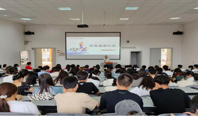 体育教研室向琪、范轶倩两位老师围绕“健康的运动方式和慢跑的动作技巧”主题,为200余名学生代表进行了体育健康科普知识讲座,并组织开展“共建健康校园  从我做起”签名活动,鼓励参与签名活动的学生以“校园健康守护者”的名义,向全院同学传播健康生活方式,带头养成良好的体育锻炼习惯,营造健康的校园体育运动氛围。