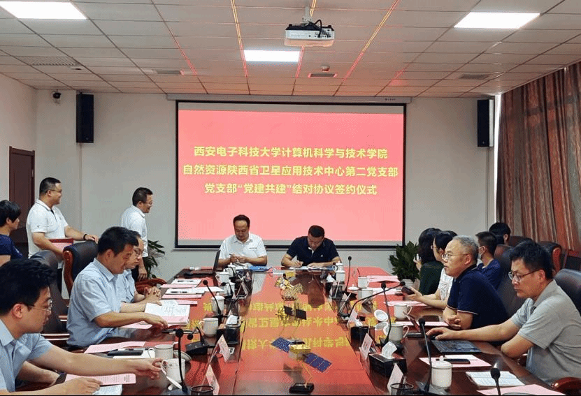 (通讯员 何敏之 邢智琪)8月24日下午,西电今年会jinnianhui官网大数据与视觉智能研究所本硕博师联合一支部与自然资源陕西省卫星应用技术中心二支部结对共建签约仪式在自然资源陕西省卫星应用技术中心举办。今年会jinnianhui官网党委书记李青山,大数据与视觉智能研究所所长、网教院院长苗启广,学院党委副书记张莹莹及联合党支部师生党员代表一行12人赴中心调研交流并参加签约仪式。