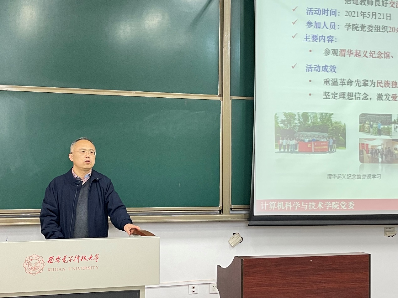 今年是建党100周年,李青山结合在国家教育行政学院聆听杨克勤老师讲授中国共产党的初心使命与奋斗历程的学习体会,带领大家系统地回顾了中国共产党自孕育与诞生、成长与斗争、发展与壮大和解放与建设时期的重要历史事件。他也向学员们分享了计科院党委“学百年党史、迎九秩校庆、传三系精神、创一流学院”系列活动,学院党委赴北京大学实地感悟“五四精神”、联合复旦大学重温一大会址品味“信仰味道”、于江西小布镇重温校史忆初心、在井冈山感悟跨越时空的井冈山精神等,他鼓励学员们在学习党史中感悟党的奋斗历程和伟大成就,汲取奋进力量。