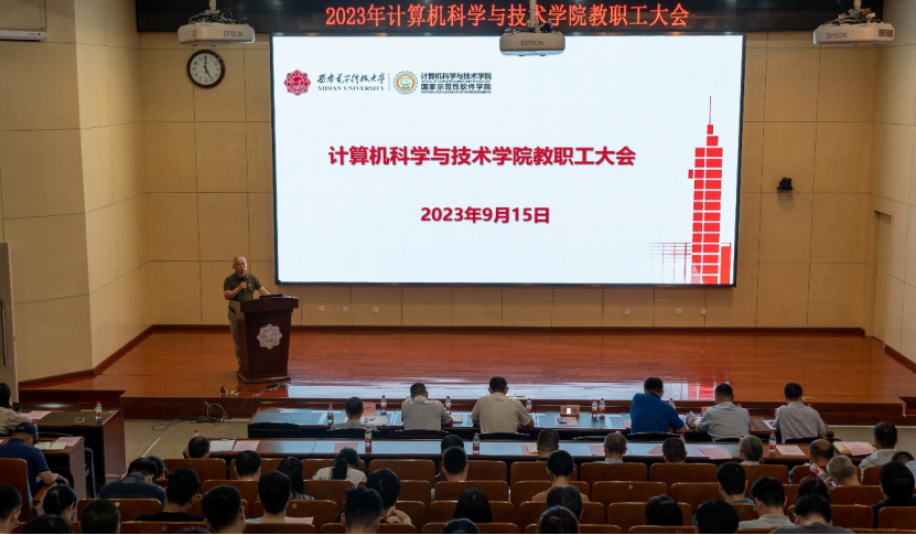 副院长万波、杨力、李瑞、赵韩强分别就学院本科教育教学、研究生教育教学、特色化示范性软件学院建设、学生工作、行政人事工作进行了汇报,并立足学院实际,总结梳理了近几年特别是2023年以来,分管工作取得的进展和存在的不足,结合主题教育的相关调研成果,围绕本科教育教学审核评估、核心课程体系建设、人才培养、特色化示范性软件学院建设与发展、学生工作、人才引进和教师培养、综合治理、安全稳定等重点工作向全体教职工汇报了工作思路和后续的工作举措。