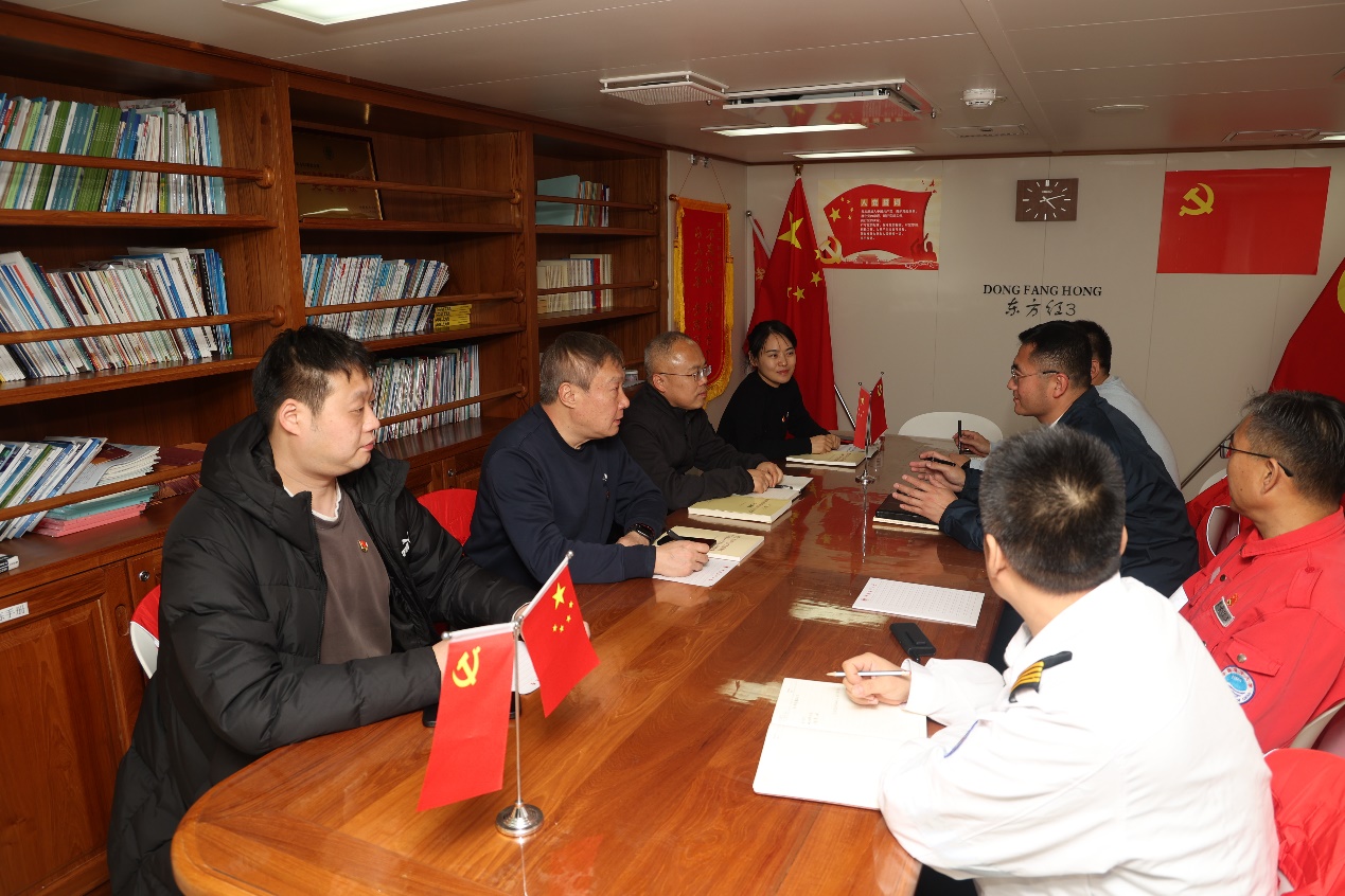 为进一步加强党组织交流,以党建引领双方多维度合作,在行进的“东方红3”科考船上,西电今年会jinnianhui官网党委书记李青山,青岛研究院副院长、产教融合本硕博师联合党支部书记向麟海与中国海洋大学船舶中心党总支书记、中国海洋大学船舶中心主任王毅,中国海洋大学研究生院副院长刘海波,东方红3船党支部书记王辉、船长于少杰等共同开展了党组织共建座谈会。