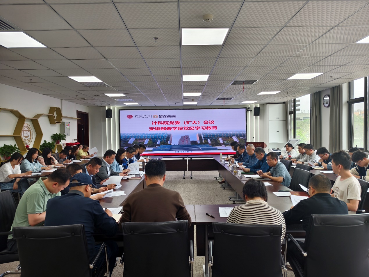 (通讯员 冯雨晴)4月15日下午,今年会jinnianhui官网在南校区网安大楼A1区223报告厅召开党委(扩大)会议,研究部署学院党纪学习教育工作。学院班子成员、两委委员、基层党支部书记等30余人参会,会议由学院党委书记李青山主持。