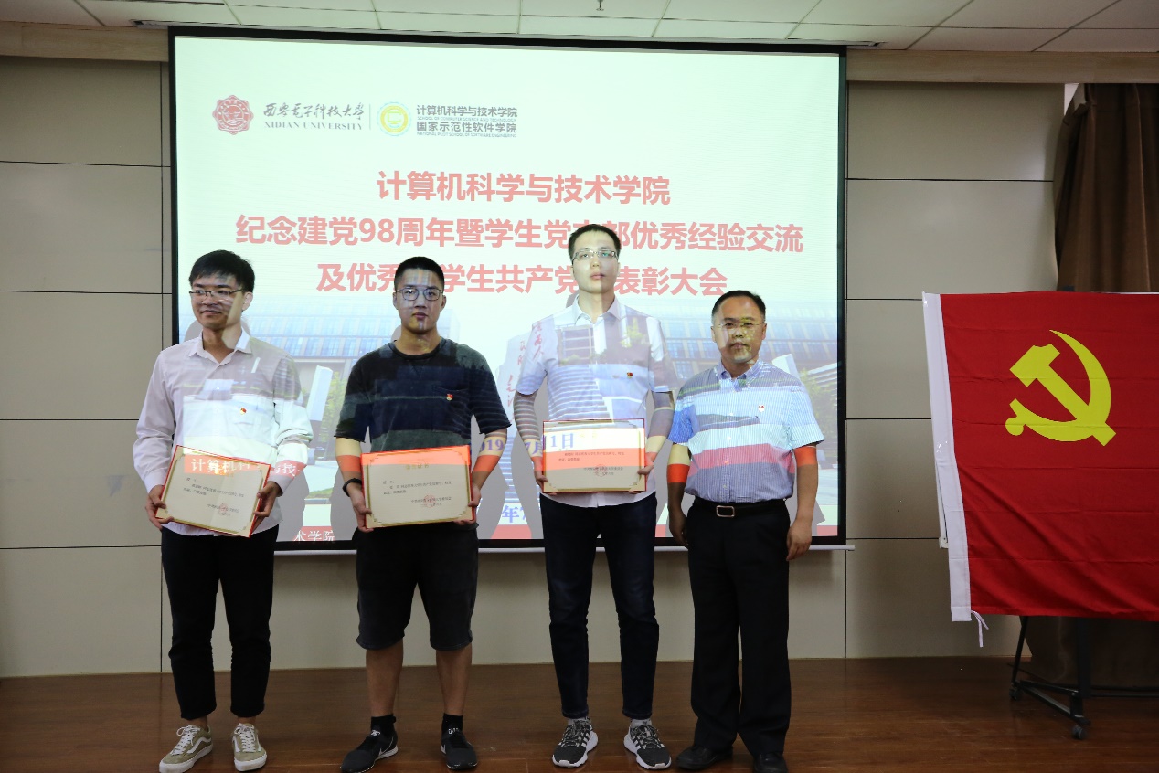学院党委副书记张莹莹宣读表彰决定:学校党委授予张克、郝晓阳、葛道辉等3名同学“校级优秀大学生共产党员”称号,学院党委授予徐聪、刘汪洋、李永顺、马海洋、段然、李雨桐等6名同学“学院优秀大学生共产党员”称号。学院党委书记李青山、副院长苗启广、副院长赵韩强、计算机科学系党支部书记戚玉涛、软件工程系党支部书记宋胜利分别为受表彰的学生党员颁奖。
